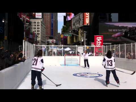 Broadway and 47th saw a little different day with the US Olympic Committee 100 Days to Sochi and their mini hockey rink. Meghan Duggan, Julie Chu and Hilary Knight